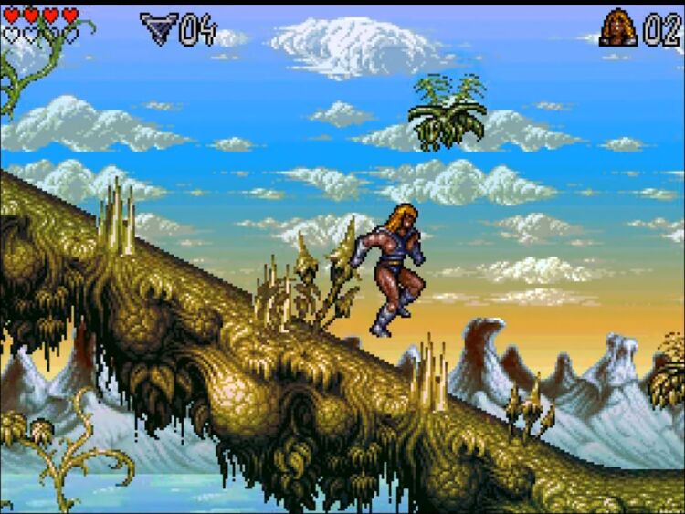 Das Spiel selbst ist eine Plattform-/Hack’n’Slay-Affäre, ähnlich wie Rastan. Du bewegst dich durch die Welt, die in alle Richtungen scrollt, und schlägst mit deinem treuen Schwert alles in Stücke, was sich dir zu nähern wagt.
