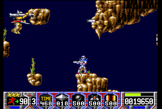 Für ein innovatives Spielkonzept stand 1990 insbesondere Lemmings, für Lobeshymnen sorgten zudem das Rennspiel Lotus Esprit Turbo Challenge und Speedball 2. Bahnbrechend waren 1991 die Konvertierung des IBM-PC Adventures The Secret of Monkey Island und das Actionspiel Turrican II; zudem brachte das deutsche Softwarehaus Software 2000 mit dem Bundesliga Manager Professional ein Spiel heraus, das sich über 100.000 Mal verkaufte. Das Fußballspiel Sensible Soccer, das Grafikadventure Monkey Island 2: LeChuck’s Revenge sowie die beiden sehr erfolgreichen Flippersimulationen Pinball Dreams und Pinball Fantasies, die alle 1992 erschienen, gelten noch heute als herausragende Beispiele an Spielwitz und zogen mehrere Fortsetzungen – auch für andere Plattformen – nach sich. Zudem erschien im selben Jahr die zuvor für technisch nicht möglich gehaltene Umsetzung des PC-Hits Wing Commander, die jedoch auf dem verbreiteten Amiga 500 wegen des starken Ruckelns nicht spielbar war. Ab 1993 erschienen vermehrt grafisch verbesserte Versionen für die ein Jahr zuvor neu hinzugekommenen Amiga-Modelle A1200 und A4000 mit AGA-Chipsatz. In diesem Jahr sorgten das innovative Aufbauspiel Die Siedler, die Actionspiele Desert Strike: Return to the Gulf und The Chaos Engine sowie das Hit-Adventure Indiana Jones and the Fate of Atlantis für Höchstwertungen der Fachpresse und verkauften sich entsprechend. Letzteres war – auch aufgrund der Schwarzkopier-Problematik – das letzte Spiel von LucasArts für den Amiga. Im Jahr 1994 erschienen mit Sensible World of Soccer, Theme Park und SimCity 2000 die letzten großen Spielehits. Biing! erschien 1995 wegen der damals noch recht geringen Verbreitung von CD-Laufwerken auch auf 19 Disketten (in der AGA-Version) – das Installationsprogramm zum Spiel enthielt selbst ein kleines Spiel, um die Wartezeit erträglich zu machen. Im selben Jahr erschienen mit Alien Breed 3D und Gloom zwei Spiele, die vom Erfolg des PC-Ego-Shooters Doom profitieren wollten, sowie das erfolgreiche Rennspiel Super Skidmarks und das Actionspiel Virocop von Entwickler-Legende Andrew Braybrook. Ab 1996 hatten sich die meisten bekannten Softwarehäuser vom Amiga abgewendet und entwickelten ausschließlich für PC und Konsolen. Selbst qualitativ hochwertige und von der Fachpresse gelobte Spiele wie der Knobel-Plattformer The Humans III, das Beat ’em Up Fightin’ Spirit, die Wirtschaftssimulation Mag!!!, das Fußballspiel Sensible World of Soccer 96/97 und die Flippersimulation Slamtilt konnten nur noch in geringen Stückzahlen verkauft werden, insbesondere wegen des anhaltenden Siegeszuges von Sonys PlayStation. Bis Ende der 1990er Jahre erschienen zwar noch vereinzelt kommerzielle Spiele kleinerer Entwickler, allerdings nur noch für AGA-Amigas, insbesondere z. B. vom Publisher Vulcan Software[8] und des kanadischen Unternehmens clickBOOM. Letztere portierte unter anderem die bekannten PC-Spiele Quake und Myst für AGA-Amiga-Rechner (1200 und 4000) bzw. Amiga-Rechner mit einer Grafikkarte.